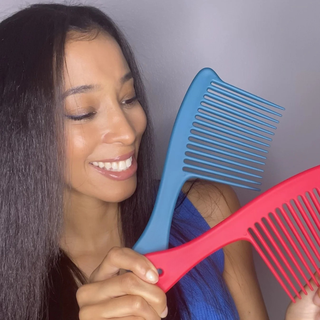 Ce peigne antiglisse aux dents larges et longues démêle vos cheveux sans douleur, même mouillés, et sans casser la fibre capillaire.